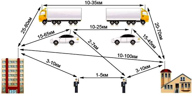 Примерная дистанция радиосвязи в режиме FM на частоте 27 мгц