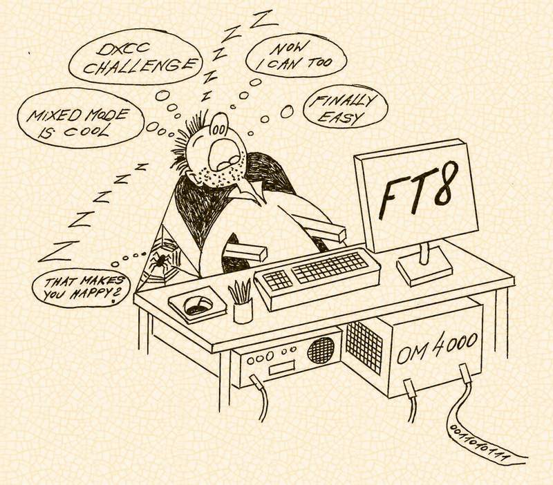 У меня ощущение что я тут такой один, угрюмый и недовольный, в то время как все веселятся и празднуют. И у меня вопрос к счастливой толпе: а не подобен ли FT8 кислоте, которая медленно, но верно разъедает радиолюбительство? Вероятный ответ - отстань со своими глупостями, дай людям делать что они хотят, все это новое, современное и замечательное, и вообще это хобби. Я полагаю, что FT8 и его производные - они горько-сладкие нововведения в наше общее увлечение. Их эффекты наиболее четко прослеживаются на тех, кто работает на КВ, голосом или телеграфом. Загляните на частоту .074 соответствующего диапазона и послушайте "стену плача" из зовущих станций. А вокруг - тишина свободных частот и никого; диапазоны часто выглядят просто пустыми. Что это - прохождение, плохая приемная антенна или радиоприемник помирает потихоньку? А вот и не угадали. Это иллюстрация того, как радиолюбители меняют свои привычки