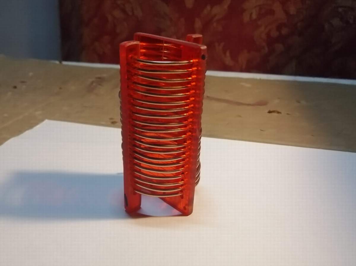 П-контур выполнен на основе двух переменных конденсаторов от старых бытовых радиоприемников, где "горячий", анодный конденсатор прорежен с целью увеличения рабочего зазора между пластинами. После переделки его ёмкость составила 12-135пф. Полная ёмкость "холодного" конденсатора от 17-995пф. Катушка П-контура состоит из двух частей. Диапазоны 28-21 мгц, это 6 витков проводом 4.0мм диаметром 40мм, вторая катушка выполнена на самодельном каркасе диаметром 50мм и намотана проводом 2.0мм с шагом 2,5мм, содержит 20 витков.