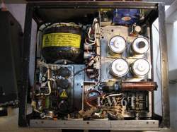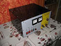 Анодный трансформатор, на основе кольцевого магнитопровода габаритной мощностью 650вт. Имеет Анодную обмотку с тремя отводами, под разные напряжения для питания анодов ламп. В данном усилителе на ГУ-50 сейчас задействовано два напряжения питания анодов + 900в и +1150в. Питание анода переключается на задней стенке усилителя. Максимальный ток нагрузки анодной обмотки - до 0.8А. Дополнительные обмотки - 75в/0.4А для управления лампами, обмотки коммутации - 12в/2А и 17в/2А. Трансформаторы были самостоятельно намотаны и испытаны предварительно под нагрузкой.